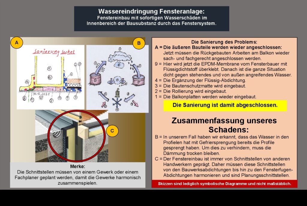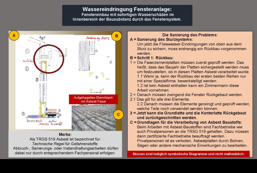 Auch das ist bereits eine Prüfschwelle, die von der Staatsanwaltschaft und auch von den Handwerkskammern gegenüber den gesetzlichen Regelungen geprüft werden muss. Denn Versicherer dürfen keine handwerkliche Regulierung selber nicht übernehmen, da dies in den Versicherungsverträgen nur dem Versicherungsnehmer unterliegt. Das gilt auch mit den Gesundheit zerstörenden Erstmaßnahmen mit Kondensat-Trocknern. Das sind nur Ersthilfen im billigen Ermessen, die nicht mit einer Gefahrenprüfung der Menschen in der Wohnung von Polygonvatro in den Fällen des BauFachForums nie geprüft wurden. Das ist die Aufgabe eines SiGeKo-Beauftragten oder Sicherheits- und Gesundheitsschutzkoordinator, der erst einmal einen Gefahrenplan aufgestellt muss.
